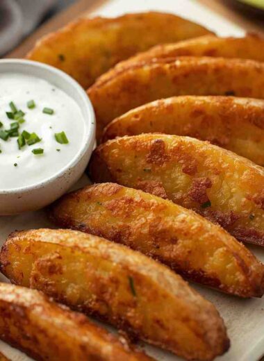 Crispy Baked Potato Wedges with Sour Cream Dip