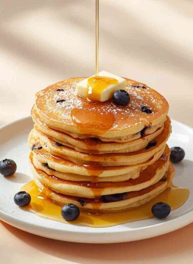 Fluffy Blueberry Pancakes with Butter and Honey