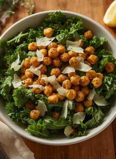 Kale Caesar Salad with Crispy Chickpeas