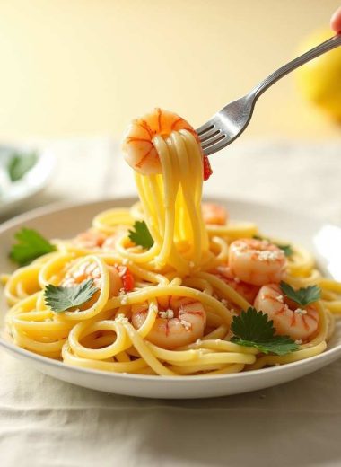 Lemon Garlic Butter Shrimp Linguine with Parsley