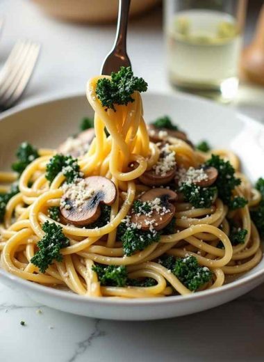 Mushroom & Kale Pasta with Garlic Cream Sauce