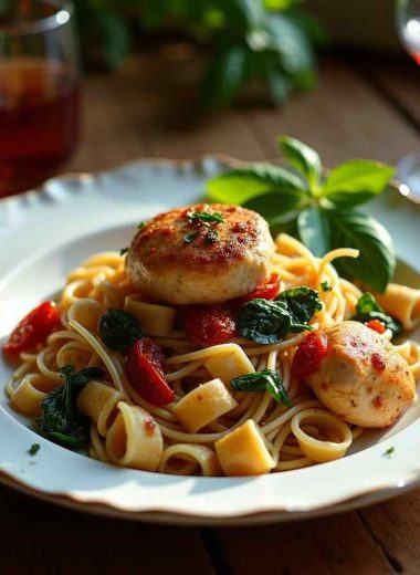 One-Pot Tuscan Chicken Pasta with Spinach & Sun-Dried Tomatoes