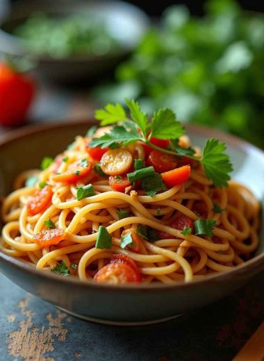 Spicy Peanut Noodles with Vegetables & Cilantro