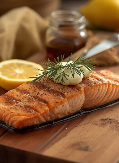 Cedar Plank Grilled Salmon with Dill Butter