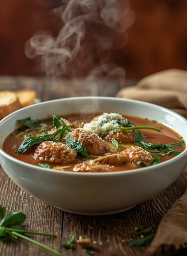 Italian Wedding Soup with Meatballs and Spinach