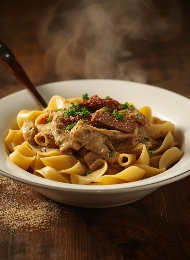 Beef Stroganoff with Egg Noodles and Cream Sauce