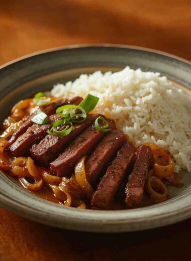 Pepper Steak with Onions and Rice
