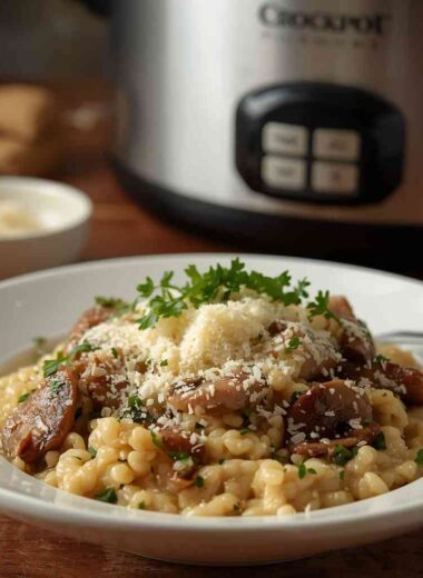 Crockpot Mushroom Risotto with Parmesan