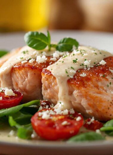 Creamy Tuscan Salmon with Spinach, Sun-Dried Tomatoes, and Garlic Cream Sauce