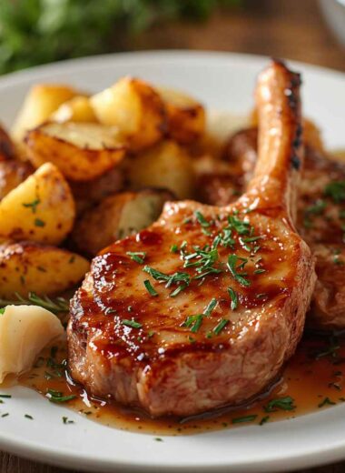 Honey Garlic Glazed Pork Chops with Roasted Potatoes