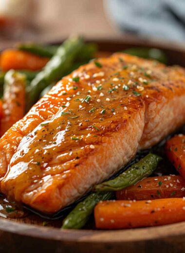 Honey Mustard Salmon with Roasted Carrots and Green Beans