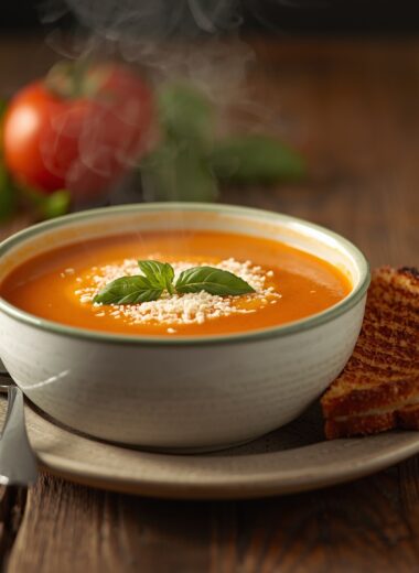 Creamy Tomato Basil Soup with Grilled Cheese