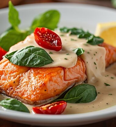 Creamy Tuscan Salmon with Spinach and Sun-Dried Tomatoes