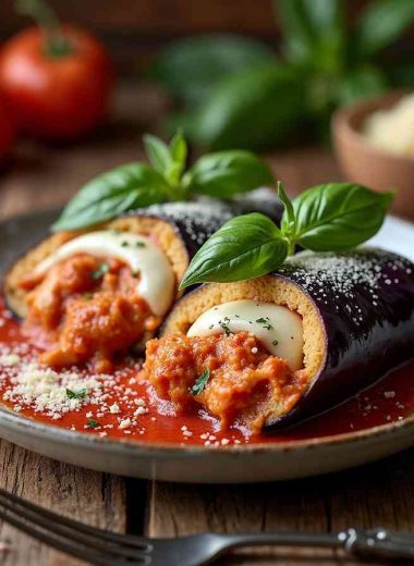 Chicken Stuffed Eggplant Parmesan