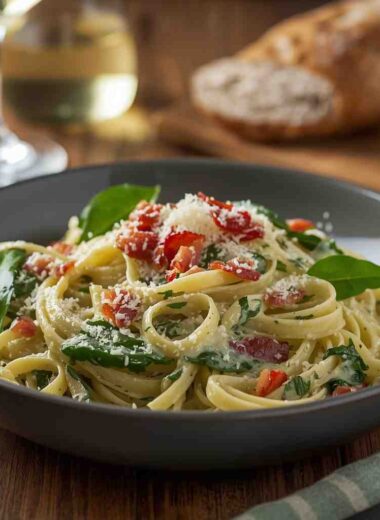 Creamy Spinach Pasta Alfredo with Bacon