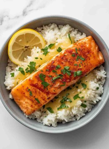 Lemon Garlic Butter Salmon Rice Bowls with Fresh Parsley