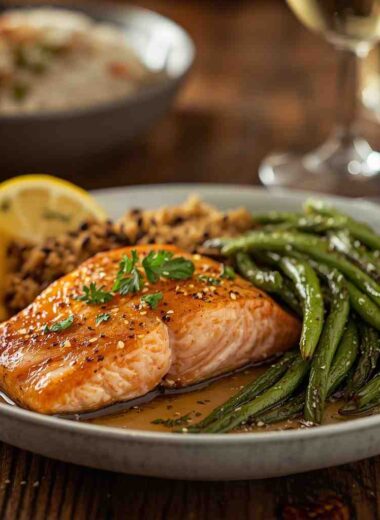 Maple Mustard Baked Salmon with Roasted Green Beans