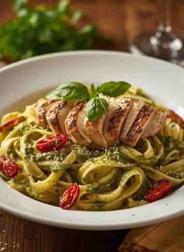 Pesto Cream Pasta with Chicken & Sun-Dried Tomato