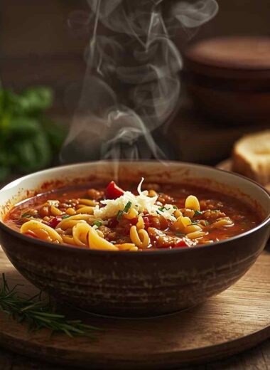 Tomato Lentil Pasta Soup with Herbs