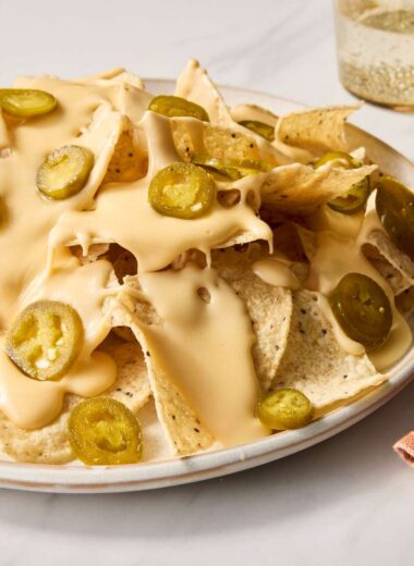 Classic Nachos with Melted Cheddar Cheese and Jalapeños