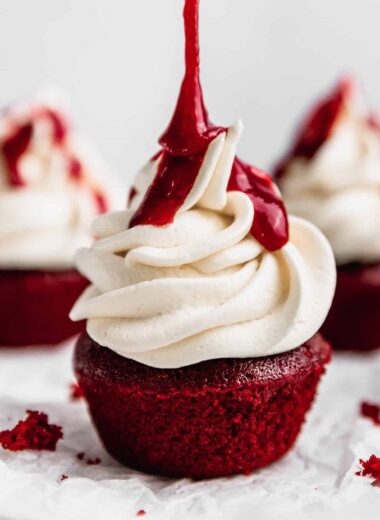 Bloody Red Velvet Cupcakes with Cream Cheese Frosting
