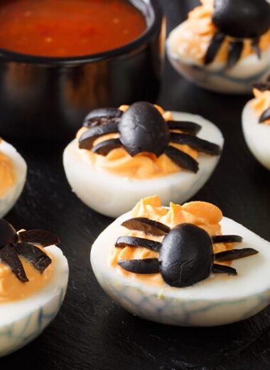 Creepy Crawly Deviled Eggs with Black Olive Spiders