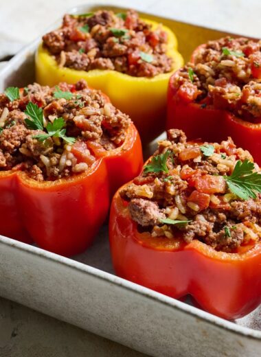 Spooky Jack-O’-Lantern Stuffed Peppers