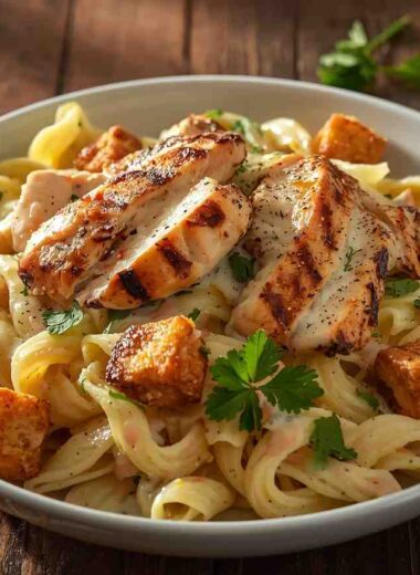 Chicken Caesar Pasta Salad with Croutons