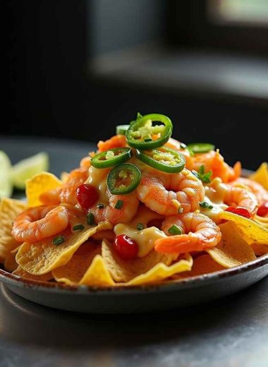 Loaded Shrimp Nachos with Cheese & Jalapeños
