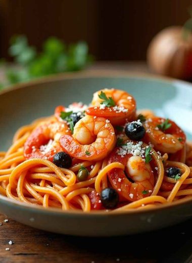 Rustic Shrimp Puttanesca Pasta