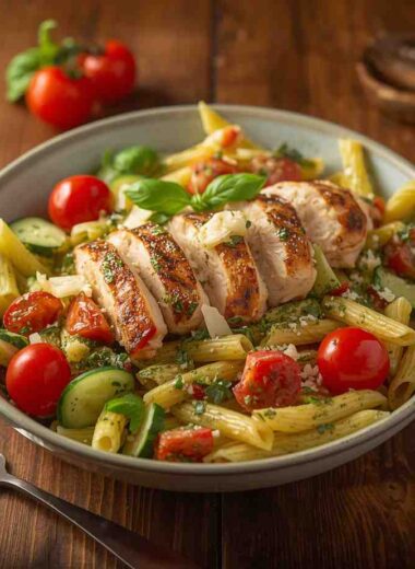 Chicken Pasta Salad with Pesto Dressing
