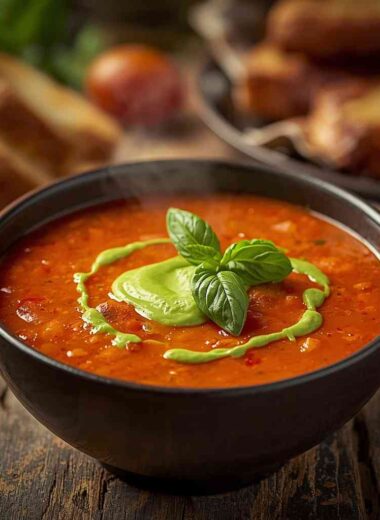 Tomato and Roasted Pepper Soup with Basil Cream