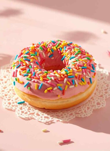 Strawberry Frosted Donuts with Rainbow Sprinkles