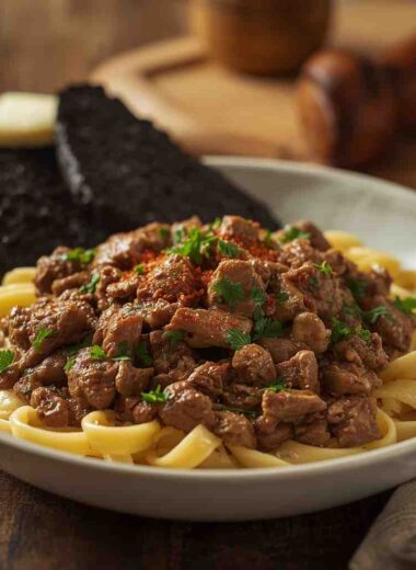 Ground Beef Stroganoff with Egg Noodles