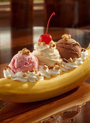 Banana Split with Strawberry, Vanilla, and Chocolate