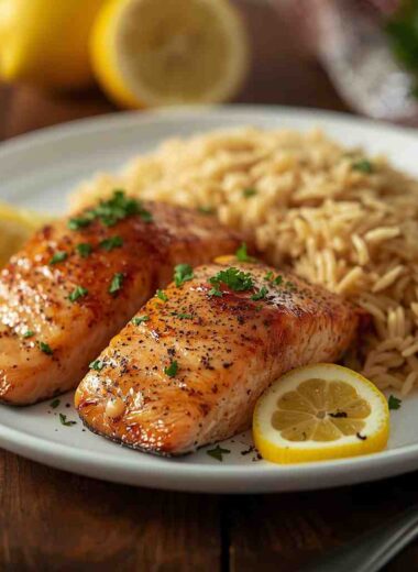 Oven-Baked Lemon Pepper Salmon Fillets with Rice Pilaf