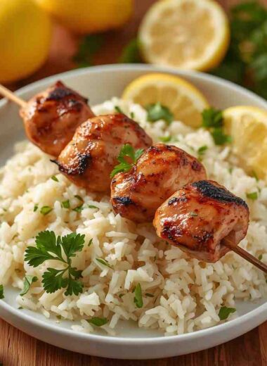 Chicken Souvlaki with Lemon Rice