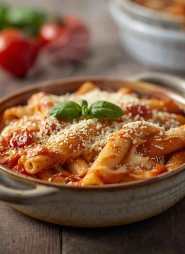 Creamy Tomato Mozzarella Pasta Bake