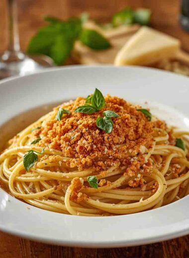 Garlic Parmesan Spaghetti with Breadcrumbs & Herbs