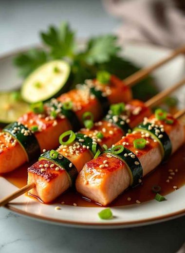 Honey Garlic Teriyaki Salmon Skewers with Zucchini