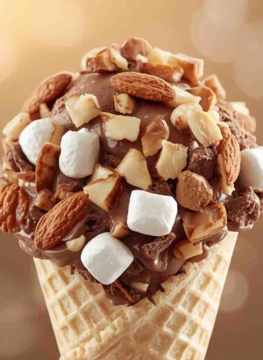 Rocky Road Ice Cream with Almonds and Marshmallows