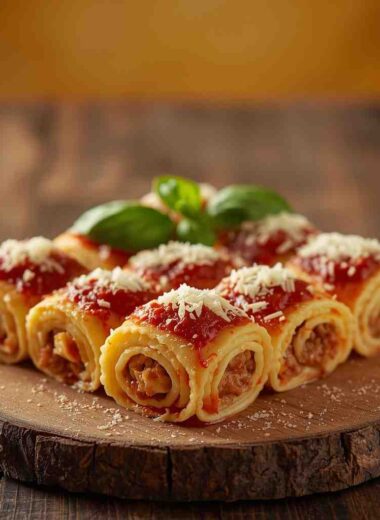 Baked Lasagna Roll-Ups with Cheese & Meat Sauce