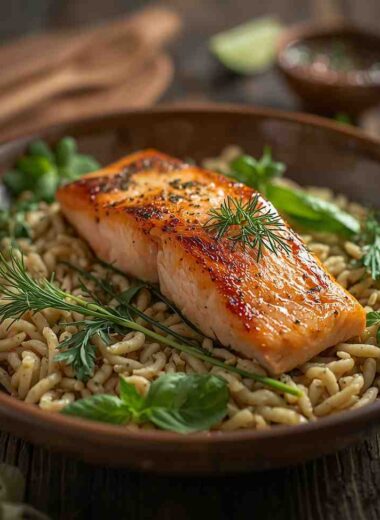 Garlic Butter Salmon with Orzo and Fresh Herbs