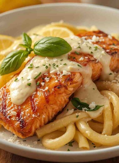 Lemon Basil Salmon Pasta with Parmesan Cream Sauce