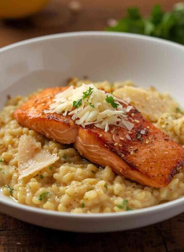 Lemon Garlic Salmon Risotto with Parmesan Cheese