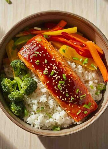 Maple Soy Salmon Bowls with Steamed Rice and Vegetables