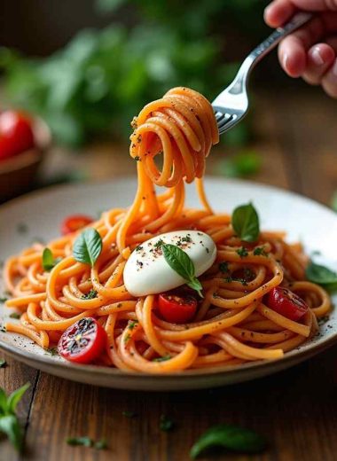 Roasted Cherry Tomato Pasta with Burrata & Basil