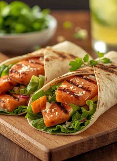 Grilled Salmon Caesar Salad Wraps