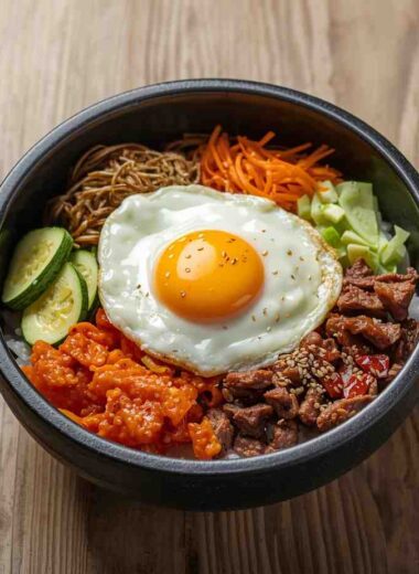 Korean Bibimbap Rice Bowl with Fried Egg