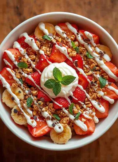 Strawberry Banana Fruit Bowl with Yogurt Drizzle